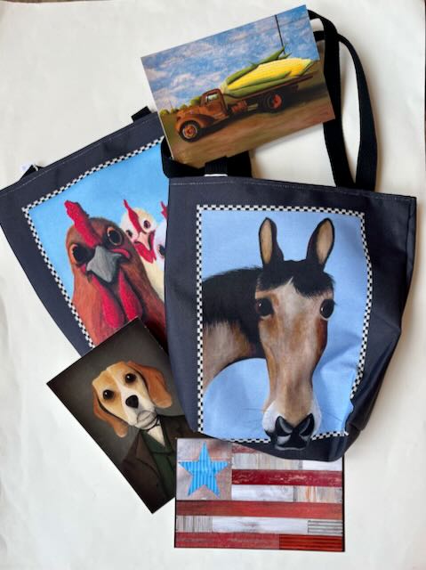 We're sorry to hear of the passing of Artist Tim Campbell. His creative legacy lives on in his unique images of animals and rustic, whimsical scenes on paintings, prints, tote bags and postcards. Stop in.