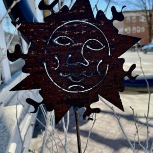 Stop in the gallery to see our great selection of metal Garden Markers by Junker Studios: Moon, Sun, Watering Fairy, Bunny, Cow, Cat, Wolf, Seahorse, and more. So fun! Enjoy outdoors or in a potted plant.